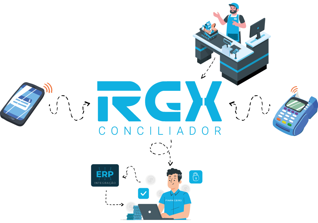 O RGX Conciliador conecta-se diretamente aos principais ERPs supermercadistas e adquirentes de cartões, integrando também transações PIX e POS.